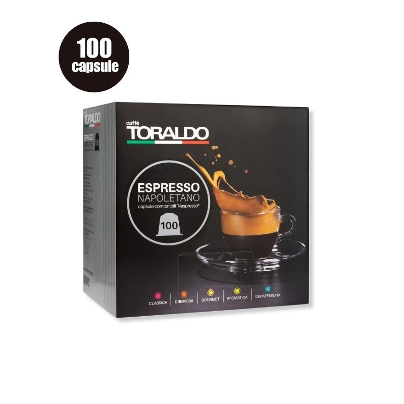Descoperă 100 Capsule Caffe Toraldo Miscela Cremosa – Compatibile Nespresso, un espresso italian autentic cu gust puternic, cremă catifelată și aromă îmbietoare.