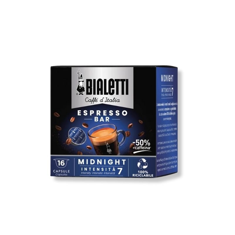 Cu Bialetti Espresso Midnight, fiecare ceașcă este o invitație la relaxare, oferindu-ți intensitatea unei cafele italiene autentice, dar cu o finețe potrivită pentru momentele liniștite ale zilei.