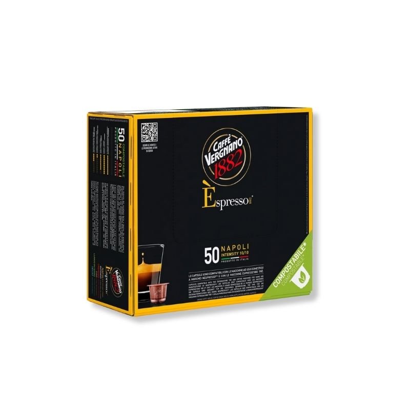 Descoperă 50 Capsule Biodegradabile Caffe Vergnano Espresso Napoli – Compatibile Nespresso, un blend intens și parfumat, cu note condimentate și corp bogat, pentru o experiență autentică italiană.