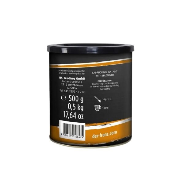 - Cu acest amestec instantaneu de pudră gata de folosit, te poți bucura de un cappuccino clasic cu o notă de alune în cel mai scurt timp.