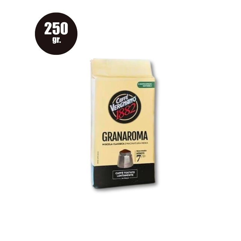 Descoperă Cafea Măcinată Caffe Vergnano Granaroma 250gr, un amestec echilibrat de Arabica și Robusta, creat special pentru moka, cu arome fine și intensitate perfectă.