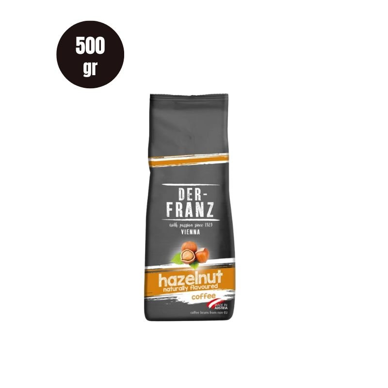 Cafea boabe Der-Franz Aromă Alune de Pădure, 500 g – o combinație savuroasă de cafea fină și note dulci de alune de pădure, perfectă pentru o experiență aromatică delicată și plăcută.